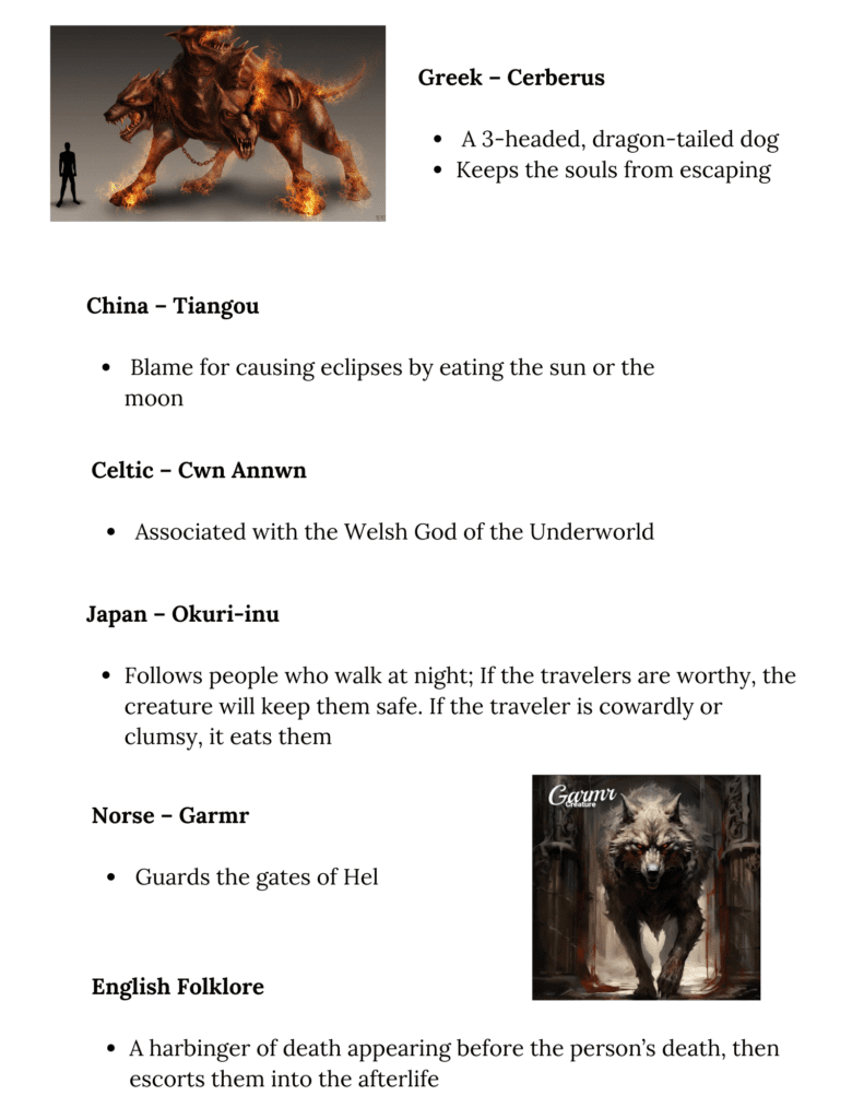 Before I began my research on the Hellhound, I did a little brainstorming, in which I broke down both black dogs and hell separately in trying to better understand the duality of the Hellhound.